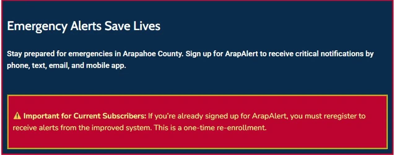 The current service that people signed up for, known as ArapAlert thru CodeRed, suffered some outages. Everyone needs to re-register through the link below.